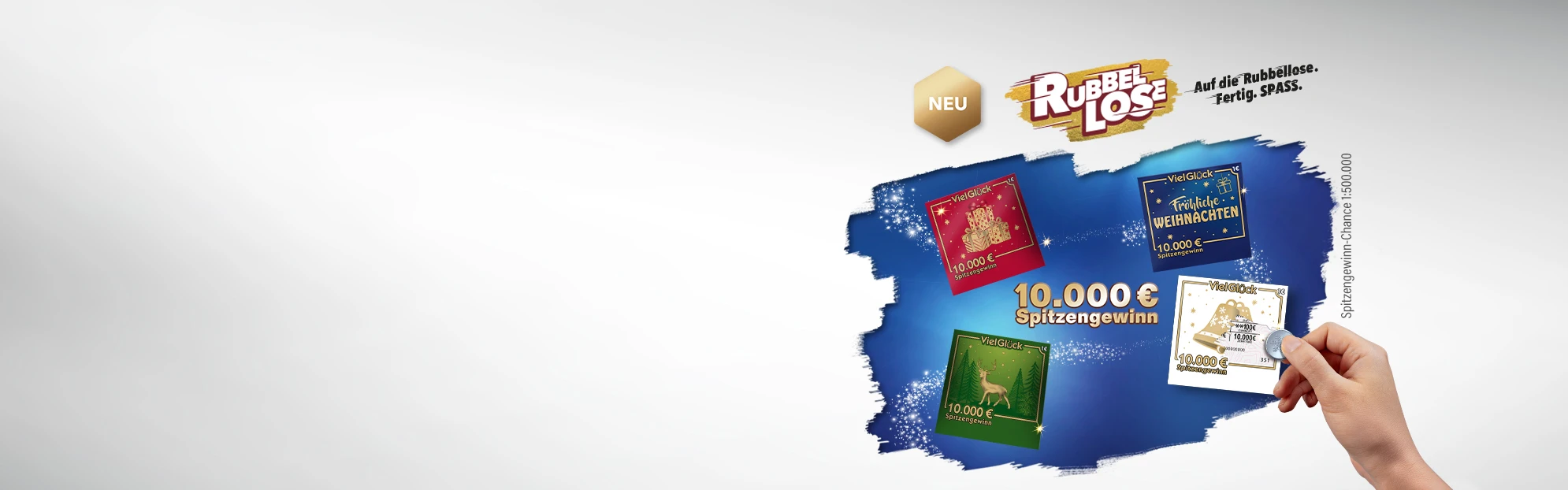 Weihnachten ist die Zeit der Wünsche – vielleicht erfüllt das 1 €-Los Viel Glück Weihnachten deinen? Jetzt mitspielen und 10.000 € gewinnen! In den WestLotto-Annahmestellen oder online erhältlich.