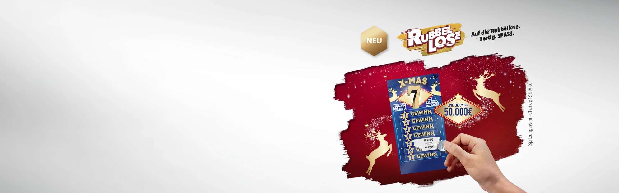 Merry X-MAS?! Die Weihnachtsversion der Super 7 bietet 7 Gewinnchancen auf Gewinne bis zu 50.000 € im festlichen Look. Jetzt ausprobieren! In den WestLotto-Annahmestellen und online erhältlich.